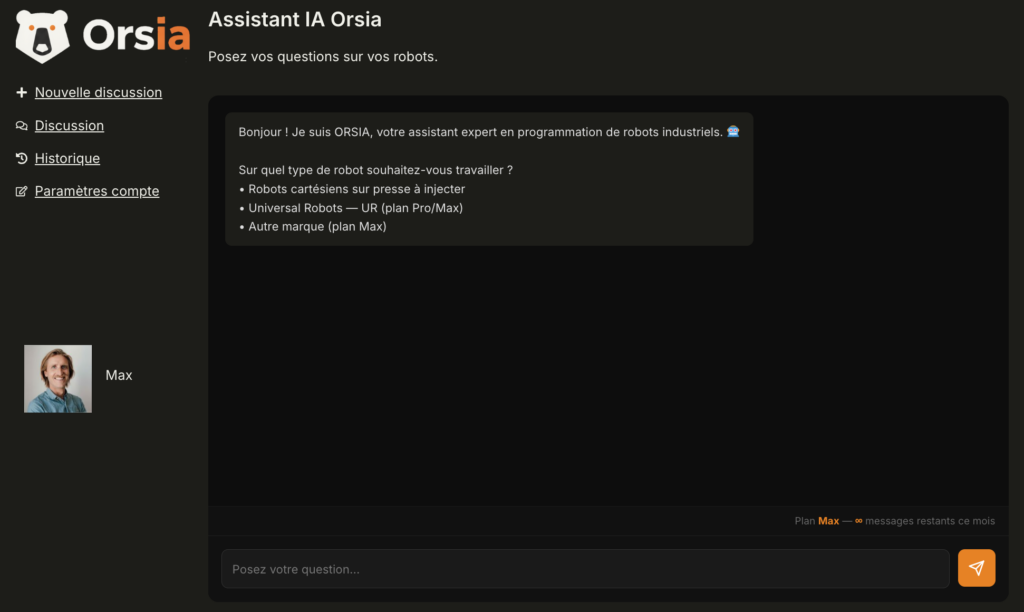 L’IA change radicalement ce processus. Avec Orsia, on ne demande plus au régleur d’écrire du code, mais de décrire une intention.